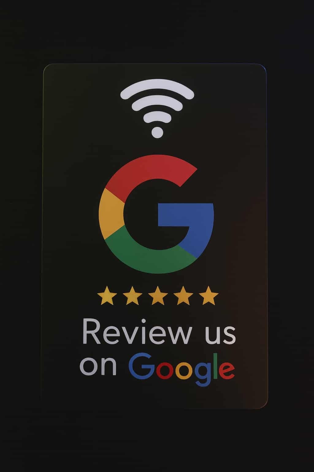 Med vores NFC anmeldelseskort kan dine kunder give en Google-anmeldelse med ét enkelt tap.